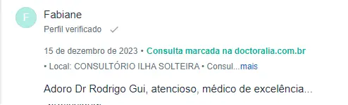 Para agendar uma consulta com o Cirurgião Bariátrico é importante saber quais são as opiniões de outros pacientes que consultaram com o Dr. Rodrigo. Por isso, site Doctoralia é excelente para você ver avaliações.
